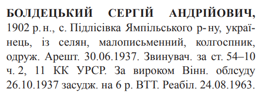 54-10, 54-11 КК УССР. Вінницьким облсудом засуджений до 6 років ВТТ