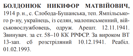 Никифор Болдонюк розстріляний 10.12.1941