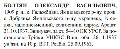 54-10 КК УССР. Трійкою УНКВС Вінницької обл. засуджений до 10 років ВТТ