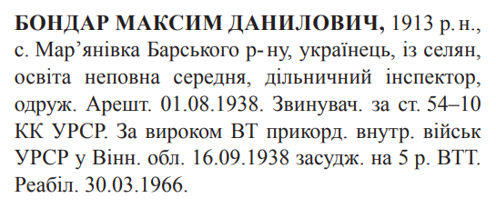 Реабілітований: Вінницьким облсудом 30.03.1966 Реабілітовані історією