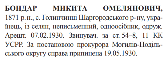 Реабілітований: Прокурором Могилів-Подільського округу 19.05.1930 Реабілітовані історією