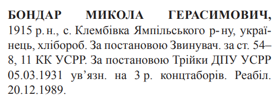 54-8, 54-11 КК УССР. Трійкою ГПУ УССР засуджений до 3 років таборів