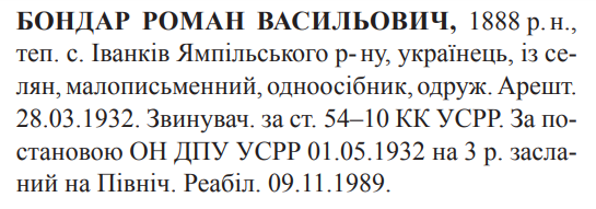 54-10 КК УССР. ОН ГПУ УССР засуджений до 3 років заслання