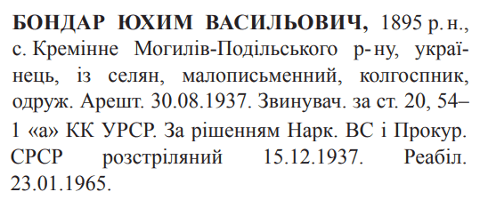 Реабілітований: Верховним судом УССР 23.01.1965 Реабілітовані історією