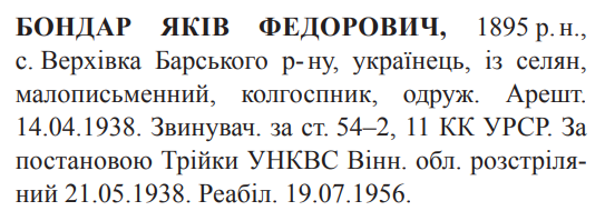 Реабілітований: Вінницьким облсудом 19.07.1956 Реабілітовані історією