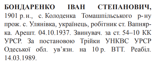 Реабілітований: Вінницьким облпрокурором 01.07.1989 Реабілітовані історією