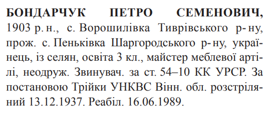 Реабілітований: Вінницьким облпрокурором 16.06.1989 Реабілітовані історією
