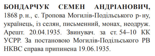 54-10 КК УССР. Могилів-Подільським районним відділом НКВС справу припинено