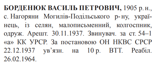 Реабілітований: Вінницьким облсудом 26.02.1964 Реабілітовані історією