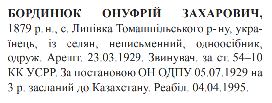 Реабілітований: Вінницьким облпрокурором 04.04.1995 Реабілітовані історією