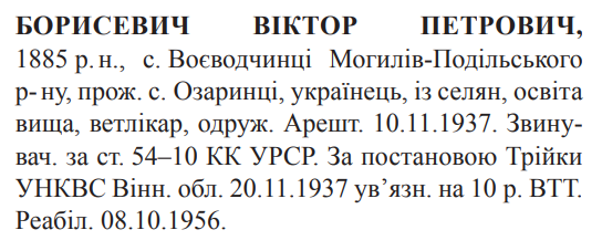 Реабілітований: Вінницьким облсудом 08.10.1956 Реабілітовані історією