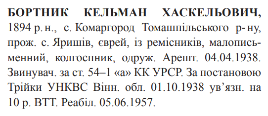 Реабілітований: Вінницьким облсудом 05.06.1957 Реабілітовані історією