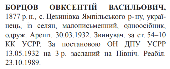 54-10 КК УССР. ОН ГПУ УССР засуджений до 3 років вислання