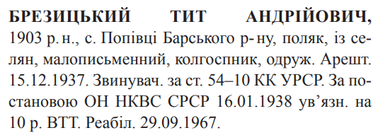 Реабілітований: Вінницьким облсудом 29.09.1967 Реабілітовані історією