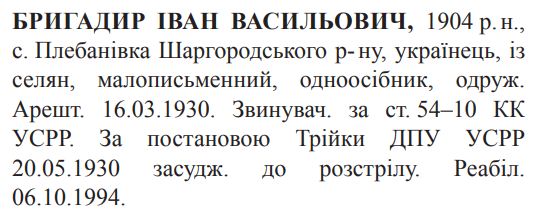 Реабілітований: Вінницьким облсудом 06.10.1994 Реабілітовані історією