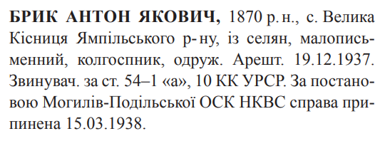 Реабілітований: Могилів-Подільською ОСГ 15.03.1938 Реабілітовані історією