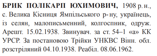 Полікарп Брик розстріляний 04.10.1938