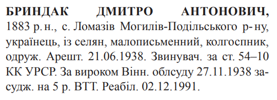 Реабілітований: Вінницьким облпрокурором 02.12.1991 Реабілітовані історією