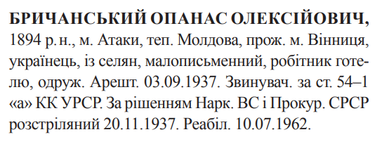Опанас Бричанський розстріляний 20.11.1937