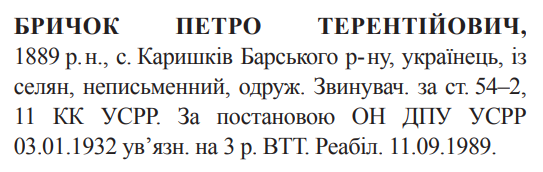 Реабілітований: Вінницькою облпрокуратурою 11.09.1989 Реабілітовані історією