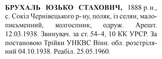 Реабілітований: Вінницьким облсудом 25.05.1960 Реабілітовані історією