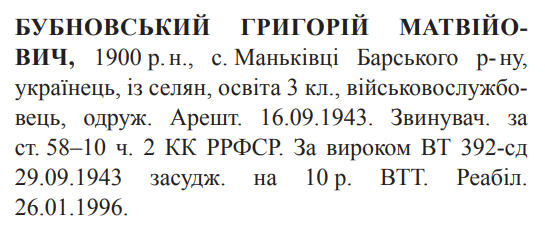 Реабілітований: Військовою прокуратурою Центрального регіону України 26.01.1996 Реабілітовані історією
