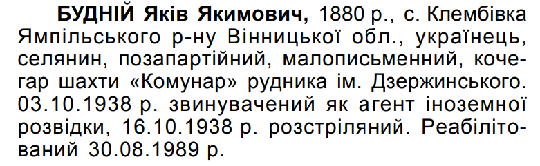 Реабілітований: 30.08.1989. Реабілітовані історією