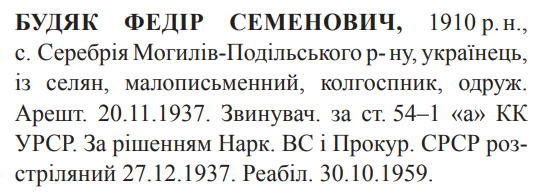 Федір Будяк розстріляний 27.12.1937