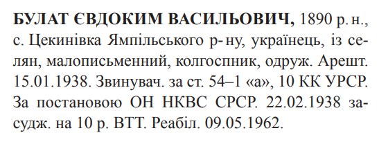 Реабілітований: Вінницьким облсудом 09.05.1962 Реабілітовані історією