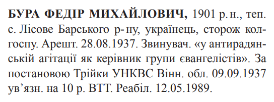 Реабілітований: Вінницькою облпрокуратурою 12.05.1989 Реабілітовані історією