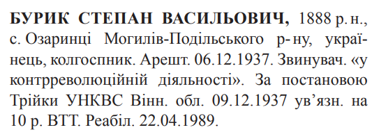 Реабілітований: Вінницькою облпрокуратурою 22.04.1989 Реабілітовані історією