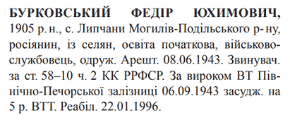 Реабілітований: Військовою прокуратурою Центрального регіону України 22.01.1996 Реабілітовані історією