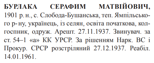 Серафим Бурлака розстріляний 27.12.1937