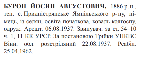 Реабілітований: Вінницьким облсудом 25.04.1962 Реабілітовані історією