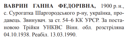 (Можливий варіант написання прізвища: Ваврин) Реабілітовані історією