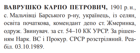(Можливо: Ваврушко Карл Петрович) Реабілітовані історією