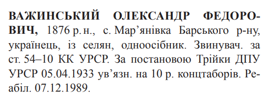 Реабілітований: Вінницькою облпрокуратурою 07.12.1989 Реабілітовані історією