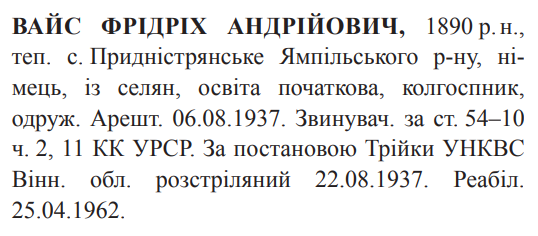 Реабілітований: Вінницьким облсудом 25.04.1962 Реабілітовані історією