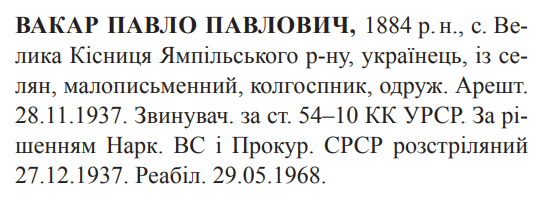 Реабілітований: Верховним судом УССР 29.05.1968 Реабілітовані історією