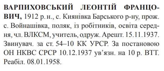 (Можливий варіант написання прізвища: Варпиховський) Реабілітовані історією