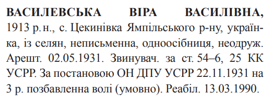 54-6, 54-25 КК УССР. ОН ГПУ УССР засуджена до 3 років позбавлення волі