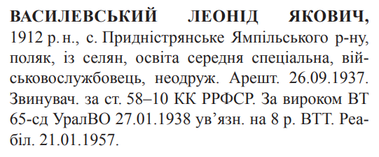 Реабілітований: Верховним судом СССР 21.01.1957 Реабілітовані історією