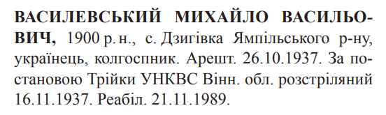 Михайло Василевський розстріляний 16.11.1937
