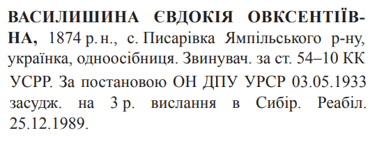 (Можливий варіант написання прізвища: Василишена) Реабілітовані історією