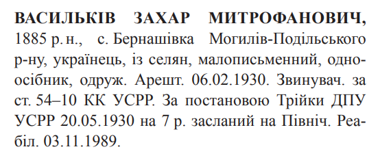 (Можливий варіант написання прізвища: Васильков) Реабілітовані історією
