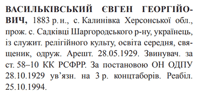 Реабілітований: Вінницькою облпрокуратурою 25.10.1994 Реабілітовані історією