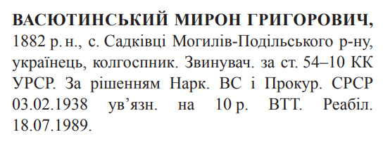 Реабілітований: Вінницькою облпрокуратурою 18.07.1989 Реабілітовані історією