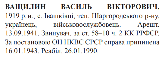 Реабілітований: Військовою прокуратурою Прикарпатського ВО 26.01.1990 Реабілітовані історією