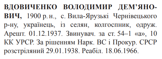 Володимир Вдовиченко розстріляний 29.01.1938 р.