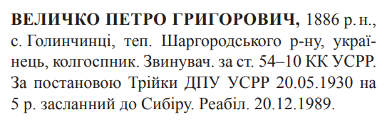 Реабілітований: 20.12.1989 Реабілітовані історією